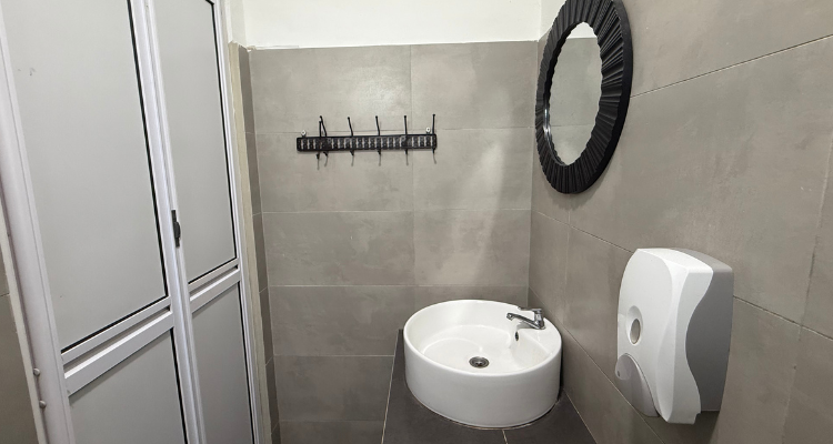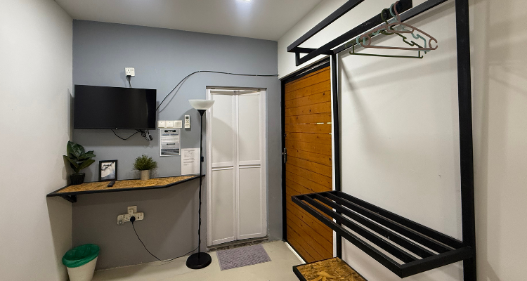 You have access to a common kitchen equipped with a refrigerator, microwave, kettle, rice cooker, stove, hot and cold water dispenser, iron, and ironing board for your convenience